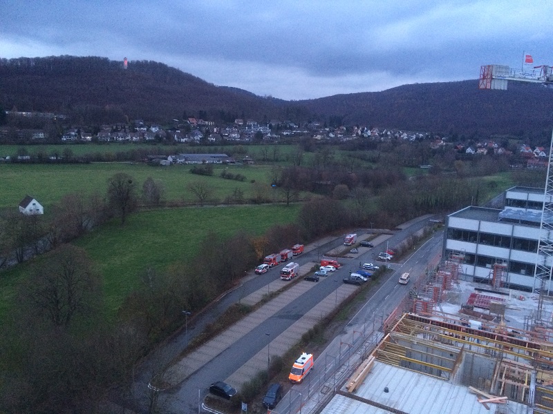 Am 21.11.2015 wurde die Feuerwehr Hagen um 14:06 Uhr per Sirene und Meldeempfänger alarmiert. Die Einsatzmeldung lautete „Feuer Explosion Bad Pyrmont Phoenix Contact Gebäude 1 Dringenauer Str Nachalarm Auf der Baustelle Explosion im Keller 3 Arbeiter vermisst Kranführer muss aus Kanzel gerettet werden“.