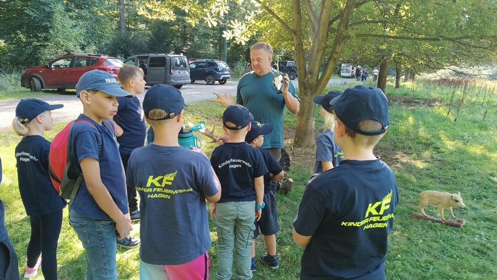 Gemeinsam mit den anderen Kinderfeuerwehren aus dem Stadtgebiet Bad Pyrmont hieß es diesmal auf zur Pyrmonter Jägerschaft. Diese hatte 4 Stationen für uns aufgebaut, an denen viel interessantes Wissen vermittelt und alle Fragen mit Freude beantwortet wurden. Wir durften den beiden Jagdhunden bei der Arbeit zusehen und bekamen den Einsatz einer Drohne zum Suchen von Rehkitzen im Feld erklärt. Weiter ging es mit einigen präparierten Tieren aus unseren Wäldern und auch einen Wolf durften wir aus der Nähe bestaunen. Zum Abschluss gab es für alle eine leckere Bratwurst. Ein großes Danke geht an alle beteiligten Jäger, die den Kids einen tollen Nachmittag beschert haben.