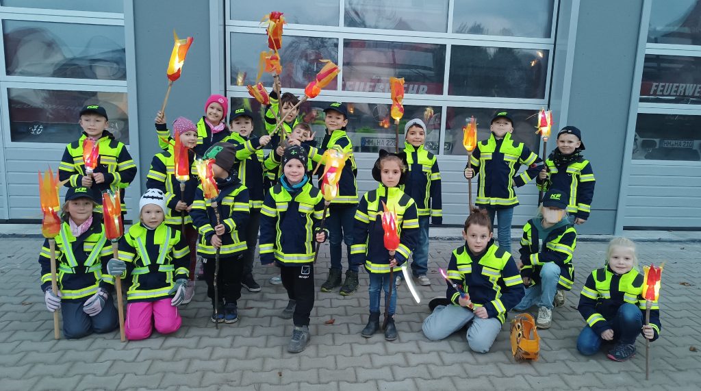 Bei unserem letzten beiden Treffen drehte sich alles rund um die Laterne. Im Oktober haben die Kinder aus PET Flaschen, Stöcken und buntem Papier tolle Fackeln gebastelt. Jede Fackel leuchtete wunderschön mit den Lichterketten, die wir aus Sicherheitsgründen genutzt haben. Am 13. November haben wir uns dann unsere Feuerwehrjacken angezogen und sind gemeinsam zur Kirche gegangen. Nach einem kurzen Vorspiel der St. Martins Geschichte ging es dann in der Dunkelheit auf die Straßen um mit Laternenliedern durchs Dorf zu ziehen. Nach dem abschließenden Punschtrinken und Kekse essen ging es zurück zum Feuerwehrhaus und dann nach Hause.