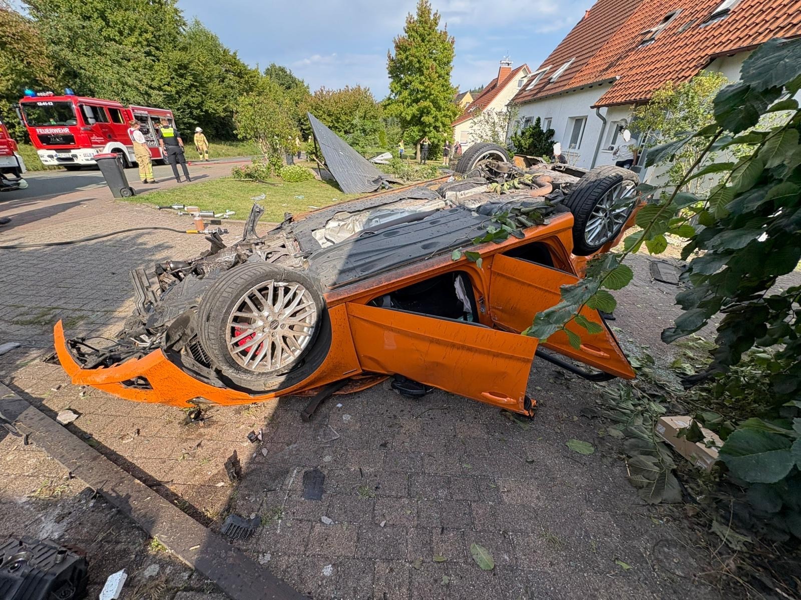 Am Dienstag kam es in Löwensen zu einem Verkehrsunfall – dabei kam ein PKW alleinbeteiligt von der Straße ab, schleuderte durch zwei Vorgärten und kam auf dem Dach liegend zum Stehen. Dabei wurden beide Insassen verletzt und eine der beiden im Fahrzeug eingeschlossen.