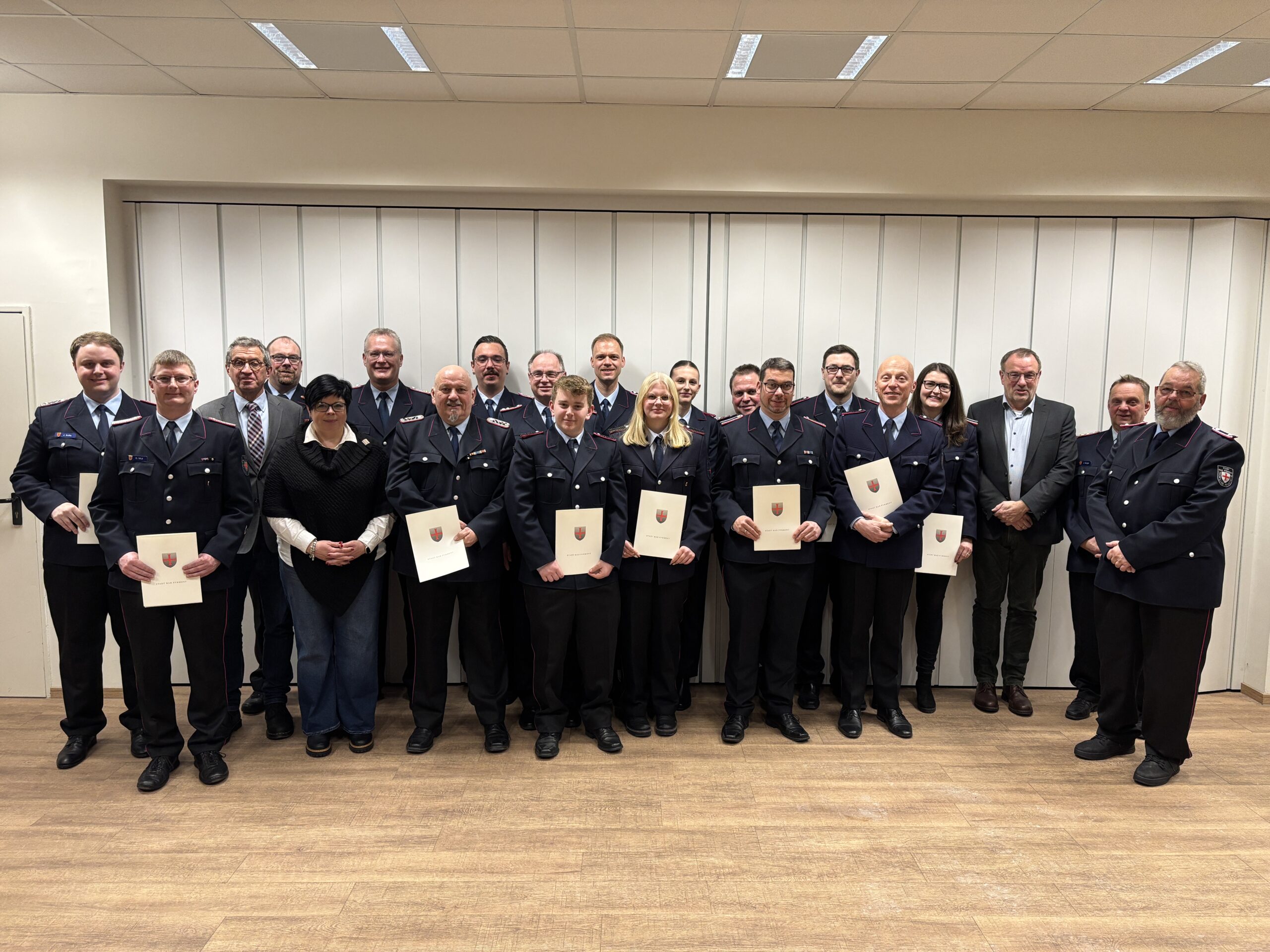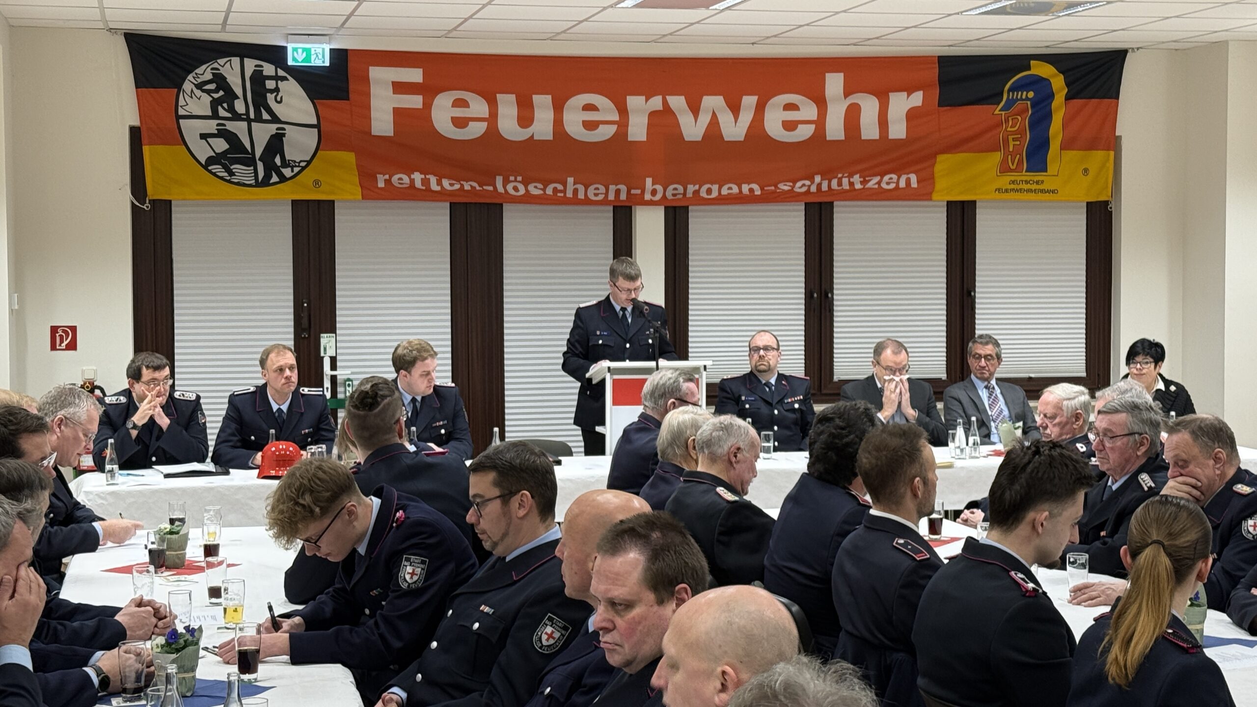 Ein besonderer Moment war die Verleihung von zwei herausragenden Ehrungen. In Würdigung seiner 18 Jahre in der Wehrführung wurde Marco Brandt zum Ehrenortsbrandmeister ernannt. Des Weiteren wurde Bürgermeister Klaus Blome für seine Unterstützung und das Engagement für die Stützpunktwehr Hagen die Ehrenmitgliedschaft verliehen.