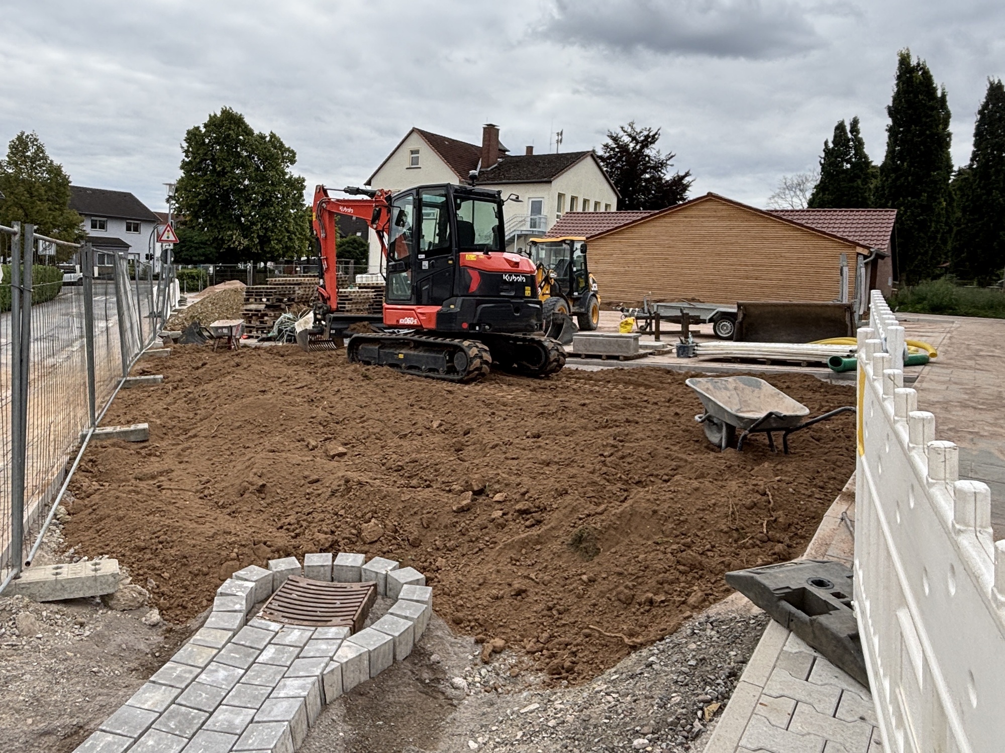 Die Bauarbeiten für die Alarmparkplätze am Feuerwehrhaus haben nach mehreren Verzögerungen in der letzten Woche begonnen. Aktuell finden die Pflasterarbeiten statt. Aufgrund von 21 Sitzplätzen in den Einsatzfahrzeugen leiten sich 21 erforderliche Parkplätze ab.