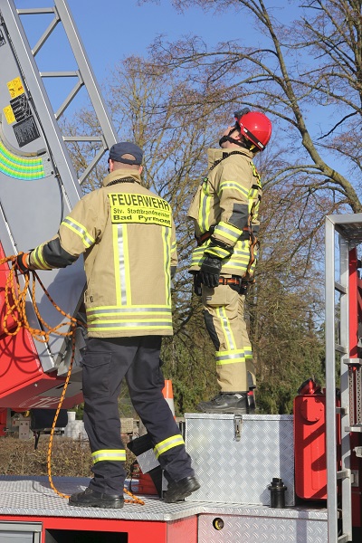 Am 25.03.2017 haben unsere zukünftigen Absturzsicherer vor ihrem Lehrgang einen Test dazu absolviert. Dabei mussten die Kameraden mit der Absturzsicherung die 30m hoch ausgefahrene Drehleiter der Ortswehr Bad Pyrmont hochsteigen. Das haben alle 3 geschafft und konnten gleich die Aussicht genießen.